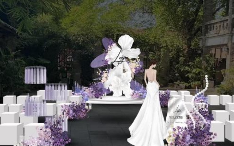 迎宾区域: 背景花艺装饰 指示牌装饰花艺1套 2.4mx2.4m(内) 舞台区域: 提供3m宽*3m高舞台(内) 整体行架打底一套 背景定制道具一套 背景纸艺花艺一套 主背景花艺装饰 地面花艺装饰4组 圆台一个 T台区域: 花艺装饰6组 宾客椅30把 仪式区造境2处 道具部分: 提供迎宾牌1个 提供手捧花1束 、胸花5朵 灯光舞美配置: 音响一套 注:花艺部分均为仿真花 椒黄路三区免车费